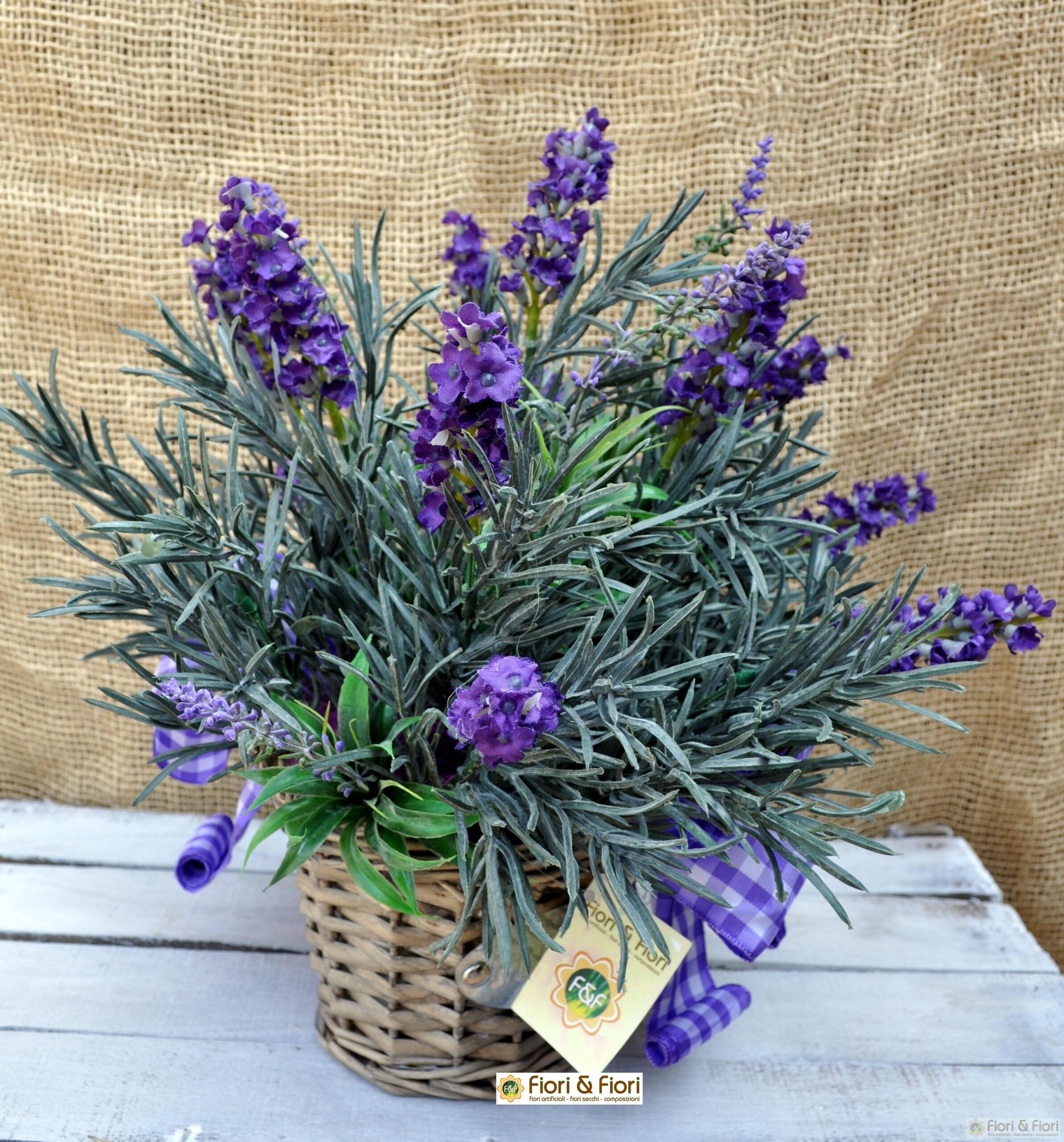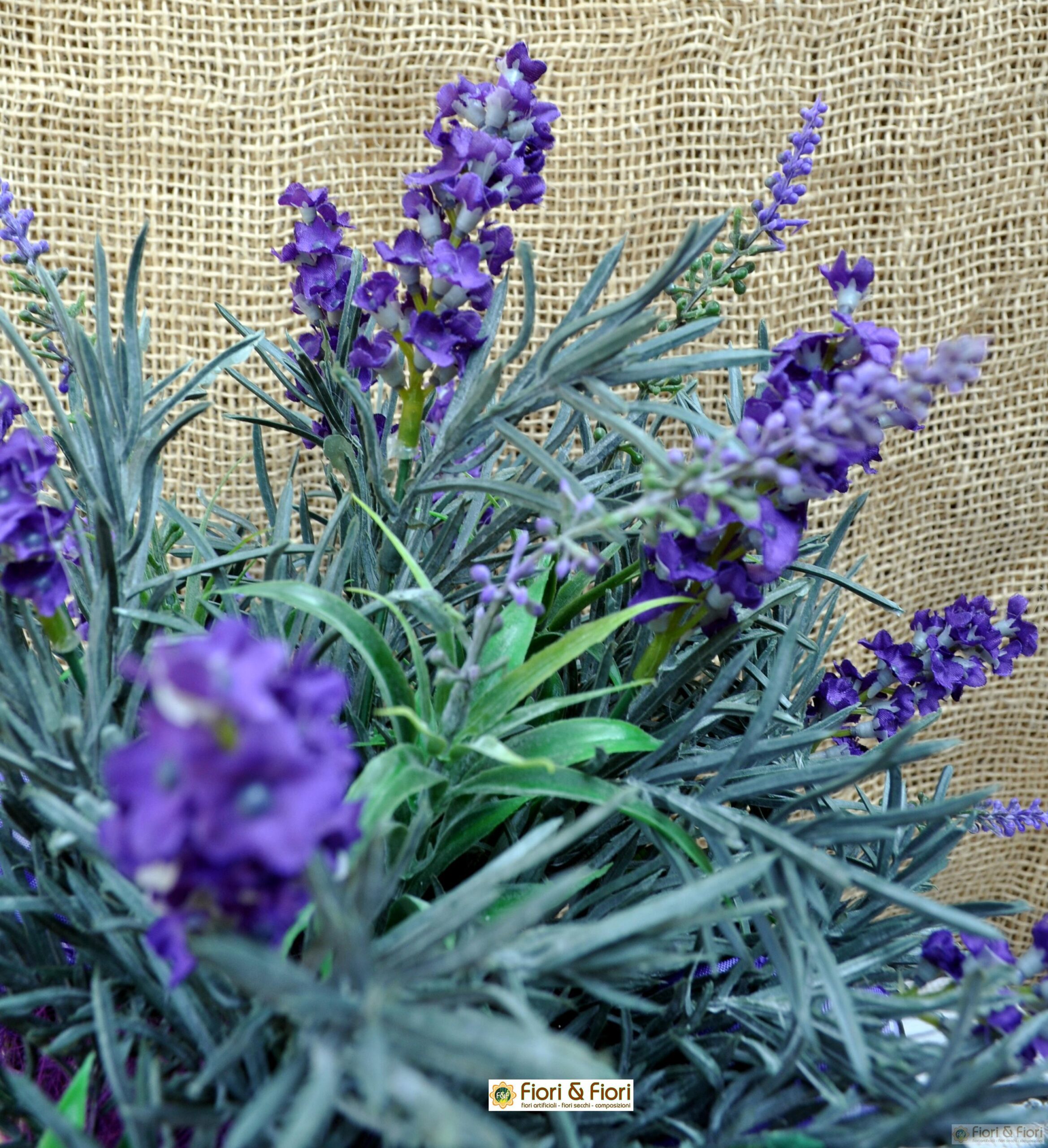 La composizione di fiori artificiali Provenza maxi si sviluppa su una base armoniosa di fiori di lavanda artificiale, accuratamente selezionati per riprodurre con realismo i dettagli delle spighe e dei caratteristici toni viola. Le sfumature variano dal lilla tenue al viola intenso, creando un gioco cromatico che cattura lo sguardo e trasmette serenità. I fiori sono disposti in modo naturale e leggermente disordinato, proprio come nei campi provenzali accarezzati dal vento, donando un effetto autentico e suggestivo.